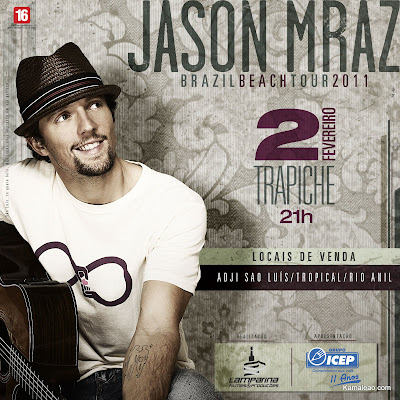 Jason Mraz fará apresentação única em São Luís, no próximo dia 2 de fevereiro, no Trapiche Ponta d'Areia. O show faz parte da turnê Brazil Beach Tour.